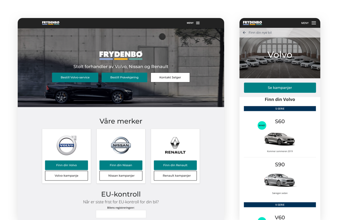 While Keyteq was in charge of all design work, the main challenge for us was the development and implementation of https://www.frydenbo-bil.no/ and frydenbo-industri.no. All these projects were built on top of our current stack: eZ Platform with Netgen Admin UI and legacy bridge for the back office, and Netgen Layouts and Site API for the front part.